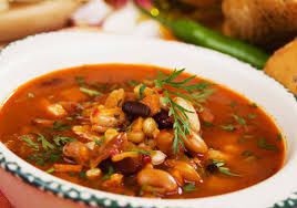 Forró zsíron megpirítjuk a vöröshagymát,rajta megfuttatjuk a fokhagymát és a köményt,majd a marha húst pár percig dinszteljük amíg a hús kifehéredik.A tűzről lehúzzuk,megszórjuk pirospaprikával,és felengedjük annyi vízzel amennyi ellepi.Amíg a leves felforr a babot előfőzzük:forrástól számítva 5 perc múlva a puffasztó levét leöntjük,a forró babot a leveshez adjuk.A levest fűszerezzük sóval,borssal,majorannával,babérral,és takarékon főzzük.Amikor félpuha a hús hozzáadjuk a zöldséget,petrezselymet,paprikát,paradicsomot,adunk még hozzá vizet,és puhára főzzük.